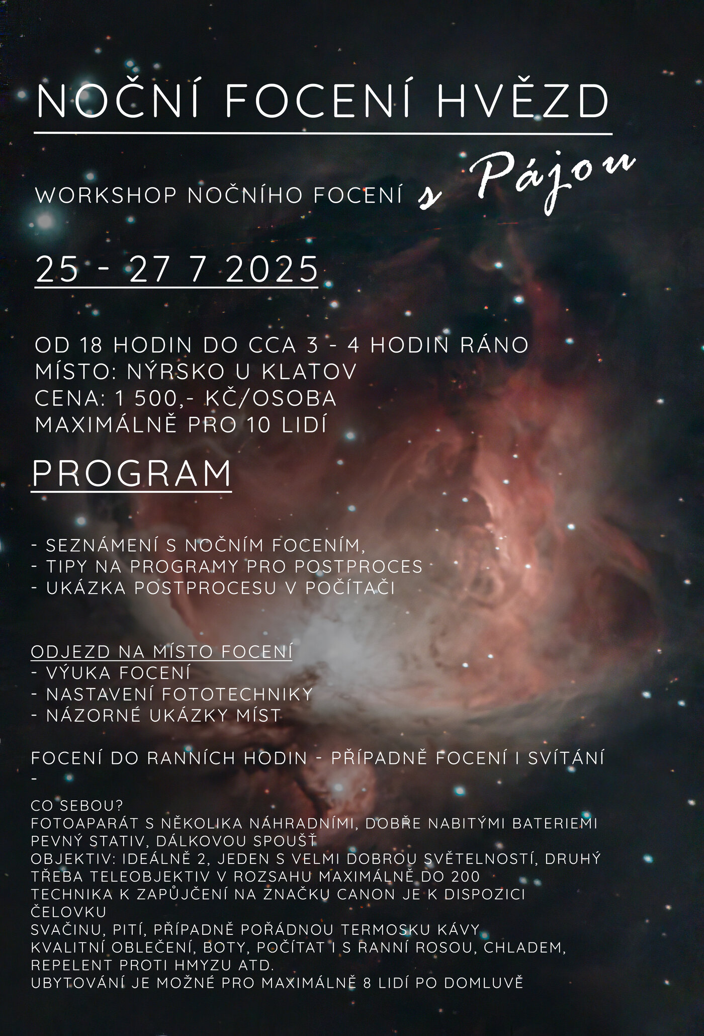 V případě špatného počasí se termín přesune na srpen 22. - 24.8. 2025.
