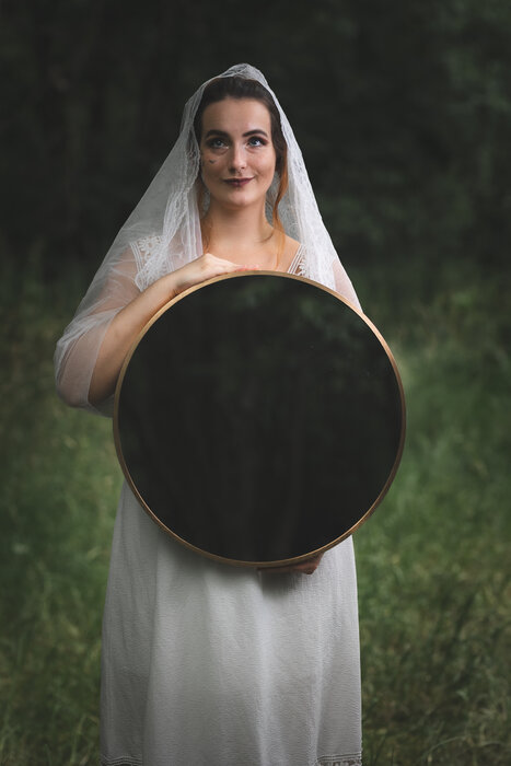 V každém z nás je duše, která sebou nese ticho i bouři. Někdy duši plnou popraskaných linií a někdy třpyt a lesk radosti, která je až bolestivě krásná. Občas staneme před rámem a uvědomíme si čas, čas změn a čas nutnosti udělat krok dopředu… projít skrze rám zrcadla, nahlédnout do své duše. Možná uvnitř rámu na poprvé neuvidíme nic. Není tam světlo, ani stín.
